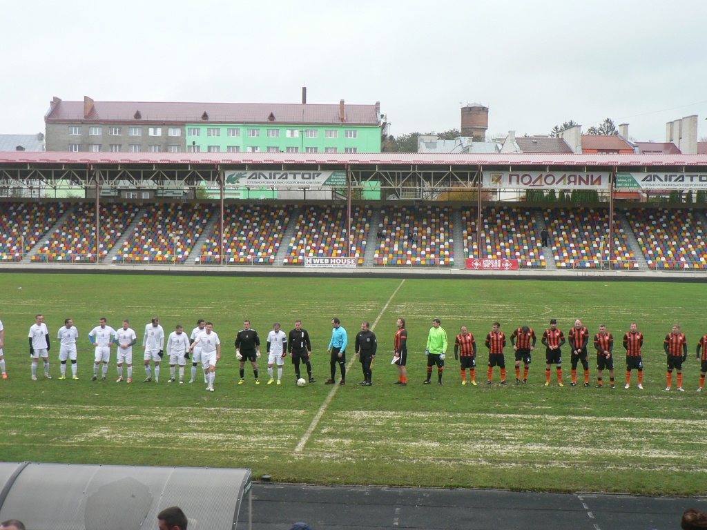 Не можна не зауважити, що глядачів на трибунах головної спортивної арени нашого обласного центру зібралося не менше, аніж на останніх двох-трьох поєдинках першої ліги. Чудовий настрій, незважаючи на прохолодну погоду, їм заздалегідь був гарантований. Передусім, звісно, через упевнену перемогу своїх колишніх і нинішніх улюбленців у проведеній за тиждень перед тим у столиці стартовій зустрічі — 4:2. А після виходу гірників на розминку оптимізму не могла не додати і та обставина, що ледве не половина з гучного за іменами ветеранського складу гостей, на відміну від більшості моложавих на вигляд господарів, зі спортивним режимом навряд чи дружить.