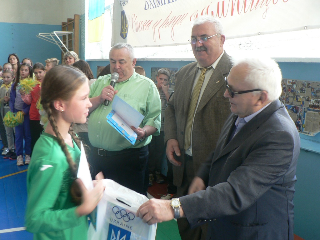 На завершення ж змагань приємною несподіванкою для їх учасників став вердикт суддівської колегії. Всі доклали максимум зусиль для перемоги, тому і всі заслуговують на звання переможця. А сама церемонія нагородження нагадала олімпійську. Директор школи Анатолій Ятищук персонально вручив кожному шестикласнику грамоту, а почесні гості Віталій Ігнатенко і Володимир Пласконіс — призи від НОКу України з олімпійською символікою. Чули діти і про інші традиційні змагання — «Олімпійське лелеченя». І мають намір із задоволенням узяти в них участь. От лишень під час уроків фізкультури потрібно старанно підготуватися до нелегких випробувань.