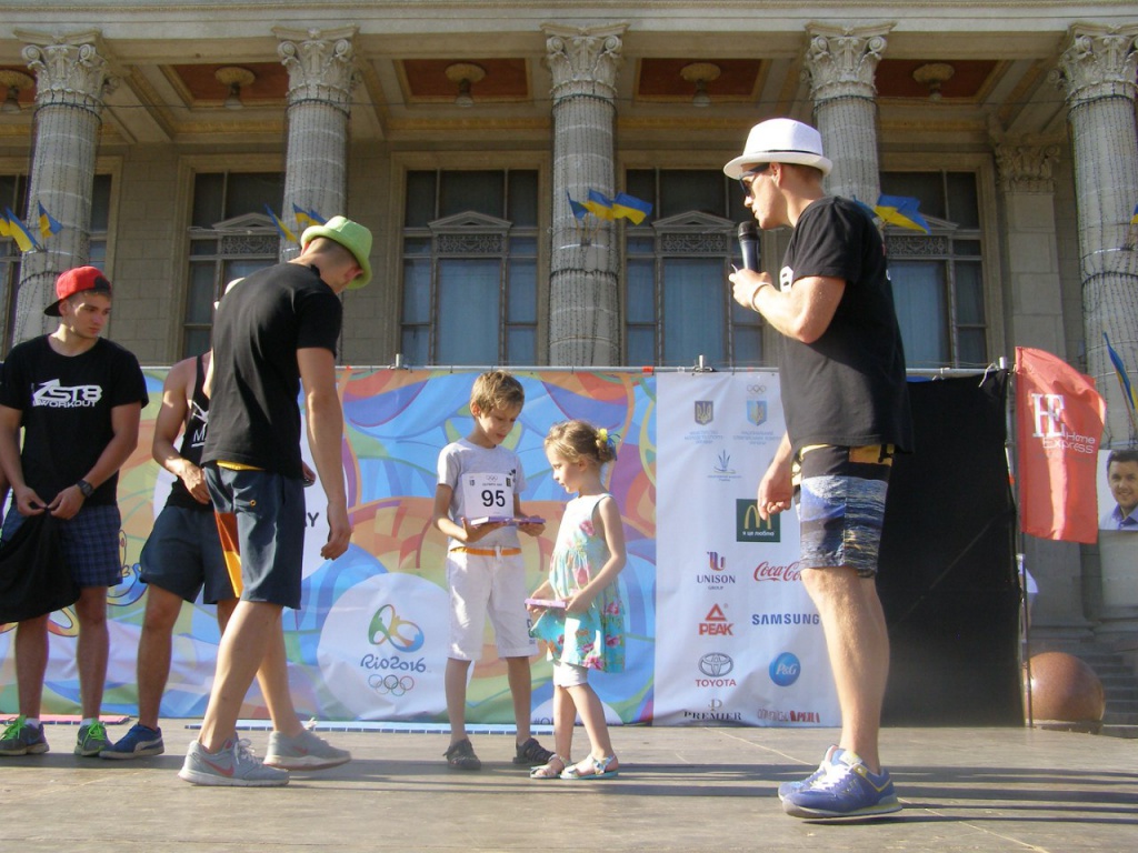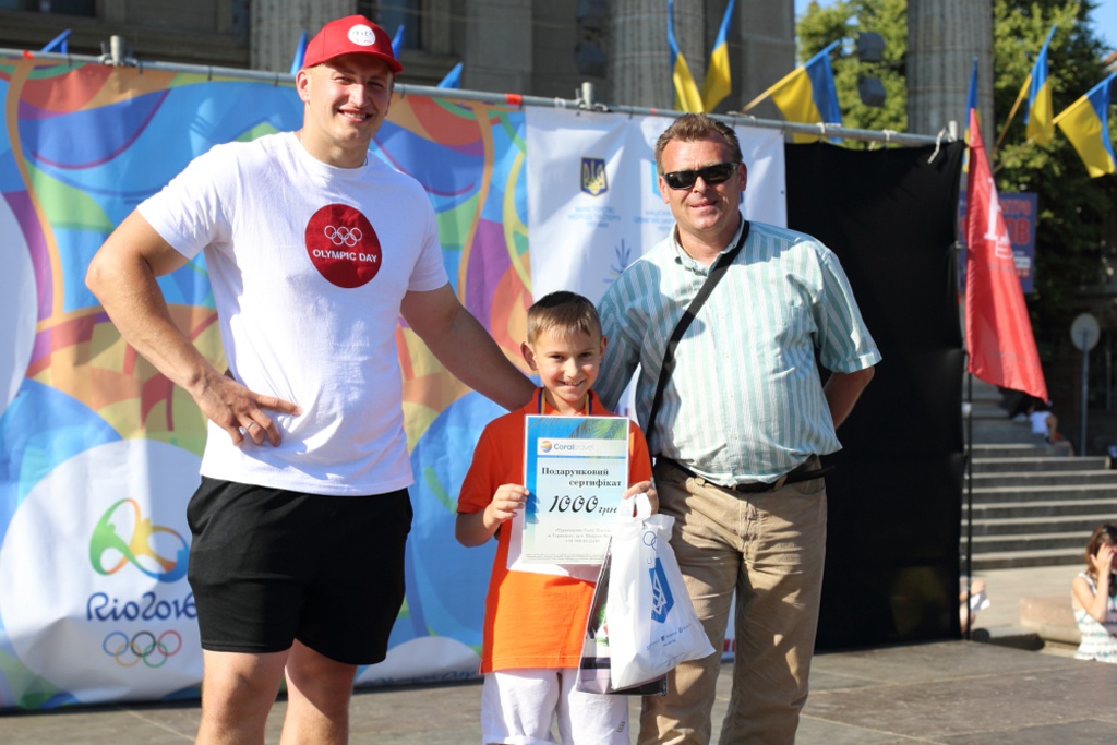 А перед головним дійством свята — символічним Олімпійським пробігом — працівники Тернопільського міського центру фізичного здоров’я населення провели ще й розминку. Переможців і призерів забігу привітали і нагородили призами від НОКу України, сертифікатами туристичного агентства «Coral Travel» та подарунками від меблевого дому «Home Exspress» Іван Панасюк і перший заступник голови Тернопільського обласного відділення Національного олімпійського комітету України Віталій Ігнатенко. Найбільш ерудовані, які перемогли у вікторині «Олімпійський всезнайко», відзначені подарунками від ПП «Колумбус». Утамувати ж спрагу всім учасникам пробігу допомогла продукція торгової марки «Микулинецькі напої».
